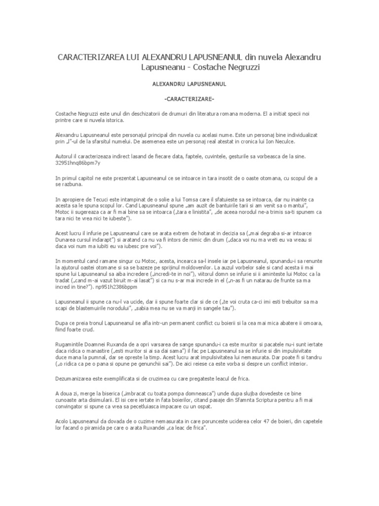 Alexandru Lapusneanul De Costache Negruzzi Pdf Document