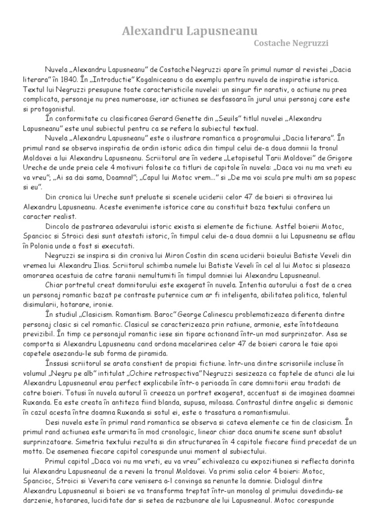 Dezactivate Rezumat Povestire Alexandru Lapusneanul De Costache Negruzzi Roman Olx Ro