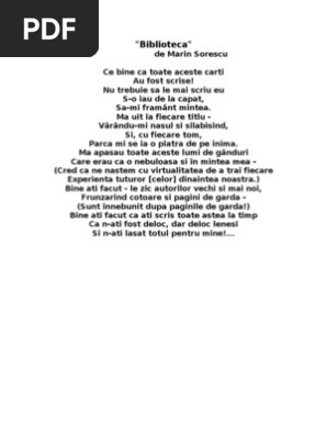 Marin Sorescu Pdf Biblioteca Universitatii Din Craiova