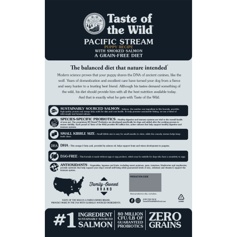 Taste of the wild high protein real fish premium dry dog food with real salmon superfoods probiotics and antioxidants 4 7 out of 5 stars 3 473 48 99 48. The quality of the food helped to clear up his acne and balance his diet. A taste of the wild with smoked salmon. He has been eating it ever since.