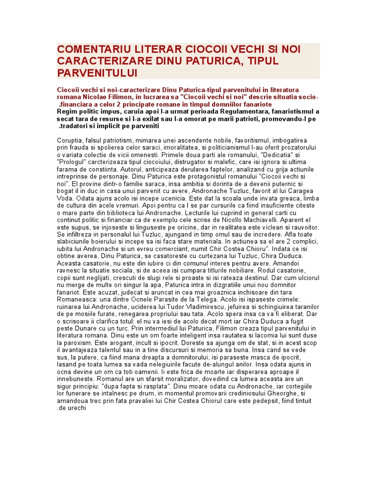 Ciocoii Vechi Si Noi Caracterizare Dinu Paturica Tipul Parvenitului In Literatura Romana Famouswhy Ro