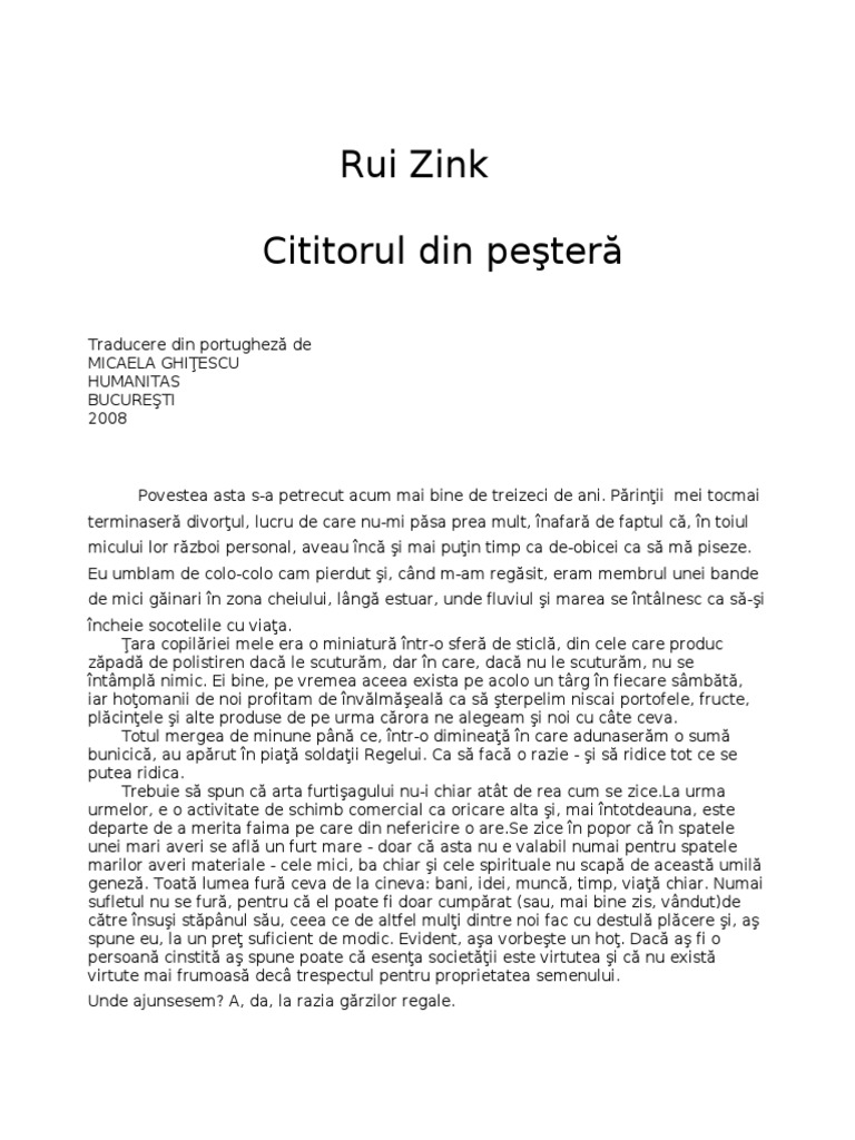 Cititorul Din Pestera De Rui Zink Rezumat