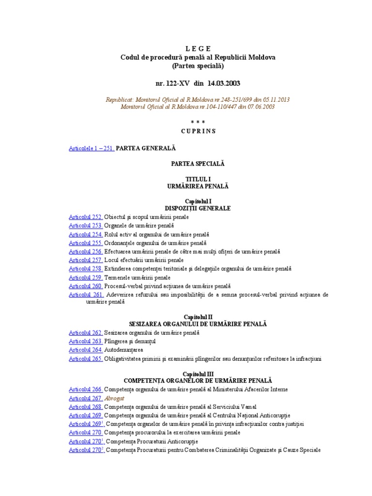 Codul De Procedura Penala Al Republicii Moldova In Conformitate Cu Ultimile Modificari Si Completari Din Monitorul Oficial Al Republicii Moldova Actualizat La 01 03 2016