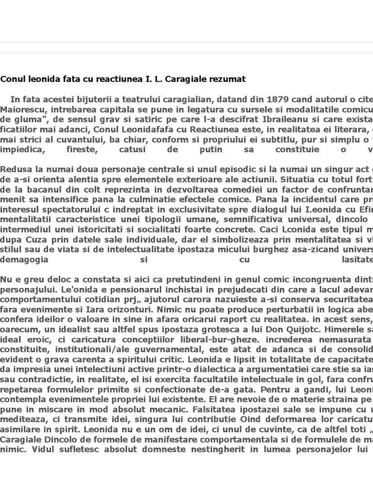 Rezumat Conul Leonida Față Cu Reacțiunea De Ion Luca Caragiale Ok Ru